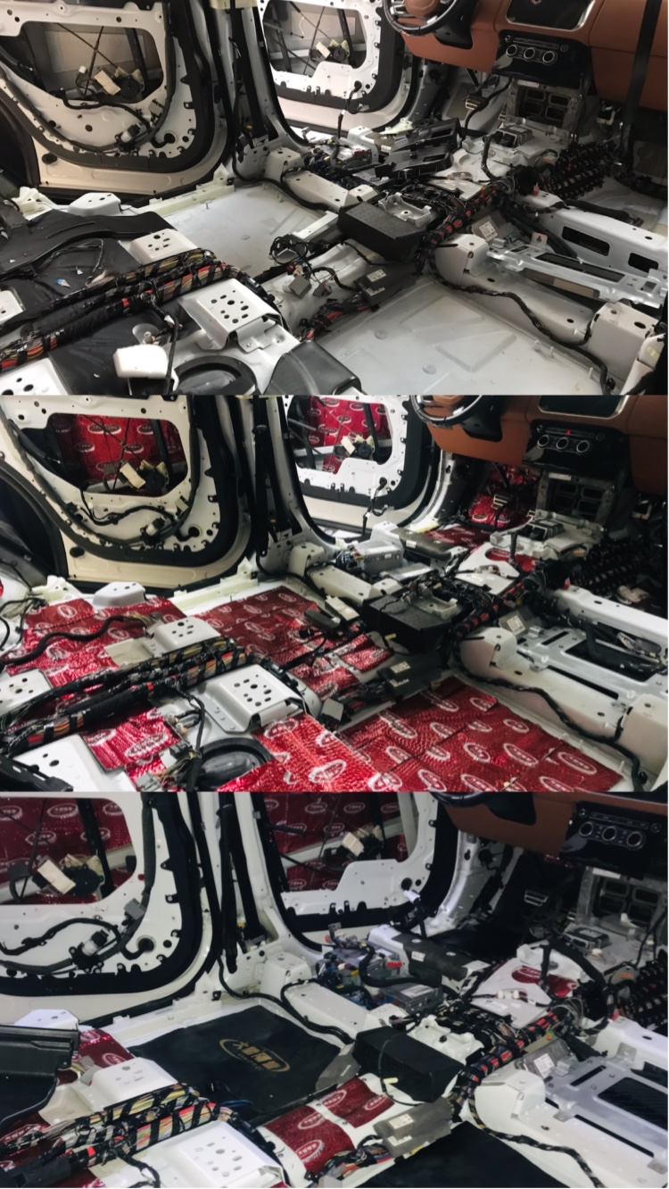 要说路虎汽车品牌,那可是男人们的最爱,豪华SUV设计,粗狂霸气的外观,内部的豪华程度普及于每个细节,给与无微不至的照顾。当然在原车隔音方面就是一个问题,就拿17款的路虎揽胜柴油版来说,他的胎噪和发动机噪音真的是很大的问题。为了能解决这个问题车主找到了大能隔音重庆静工场(正信音响改装店)对乘车环境的爱车进行深度的隔音降噪升级。